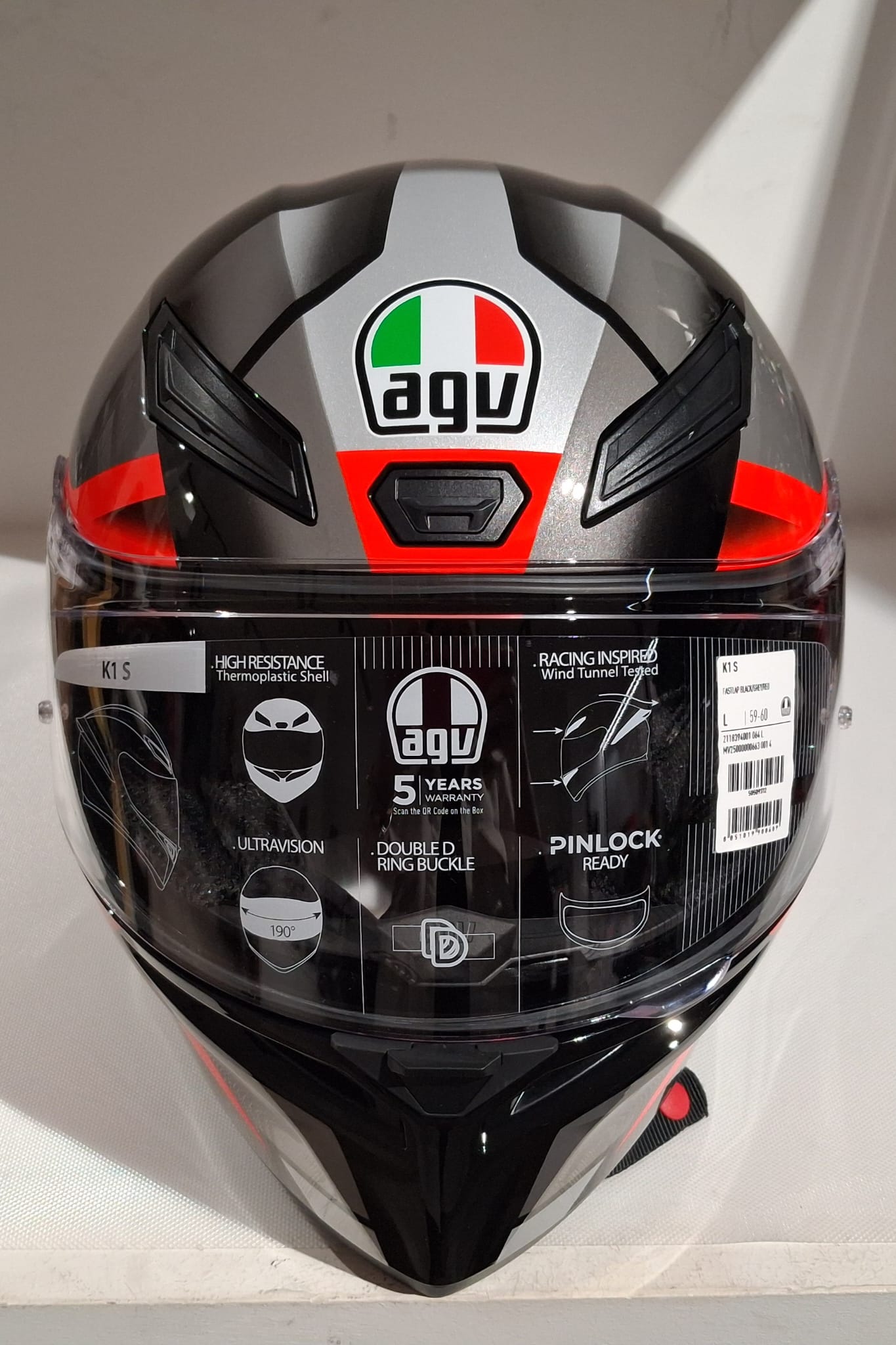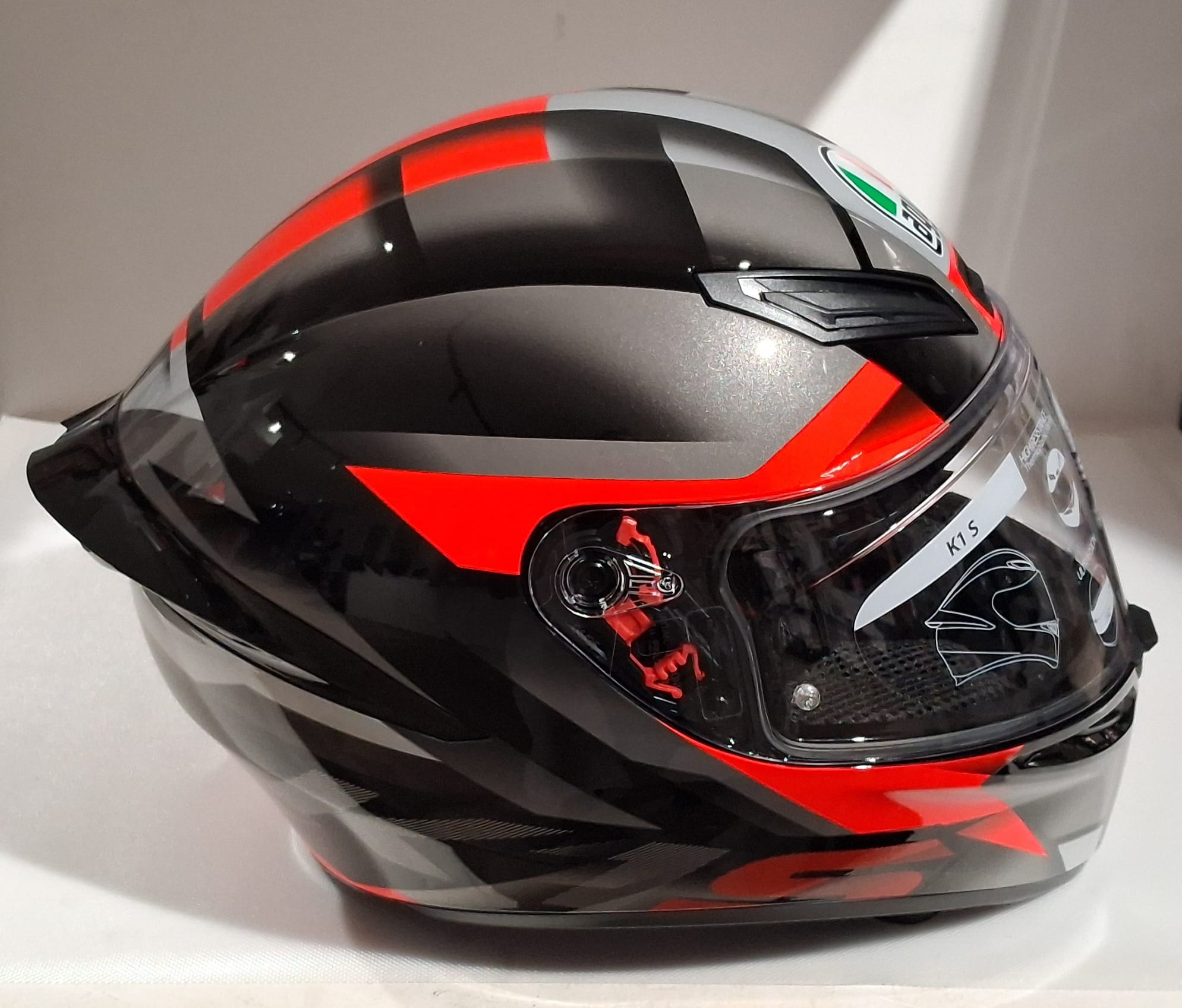 K1 S è il casco stradale nato dall’esperienza AGV in MotoGP, adatto ad un utilizzo trasversale su ogni percorso. La forma aerodinamica della sua calotta in materiale termoplastico ad alta resistenza, le prese d’aria frontali sviluppate attraverso l’esperienza racing e il nuovo Aero Spoiler progettato in galleria del vento massimizzano le prestazioni e donano stabilità anche ad alte velocità durante la guida sportiva. La visibilità panoramica antigraffio Ultravision offre una più ampia visione laterale e verticale, per un controllo totale dell’ambiente circostante. Un comfort senza compromessi, grazie ai morbidi interni Dry-Comfort rimovibili e lavabili. Grazie al protocollo costruttivo AGV Extreme Safety, K1 S supera con ampio margine i requisiti della rigorosa normativa ECE22.06.AGV K1 S è predisposto per l’installazione di sistemi di comunicazione.