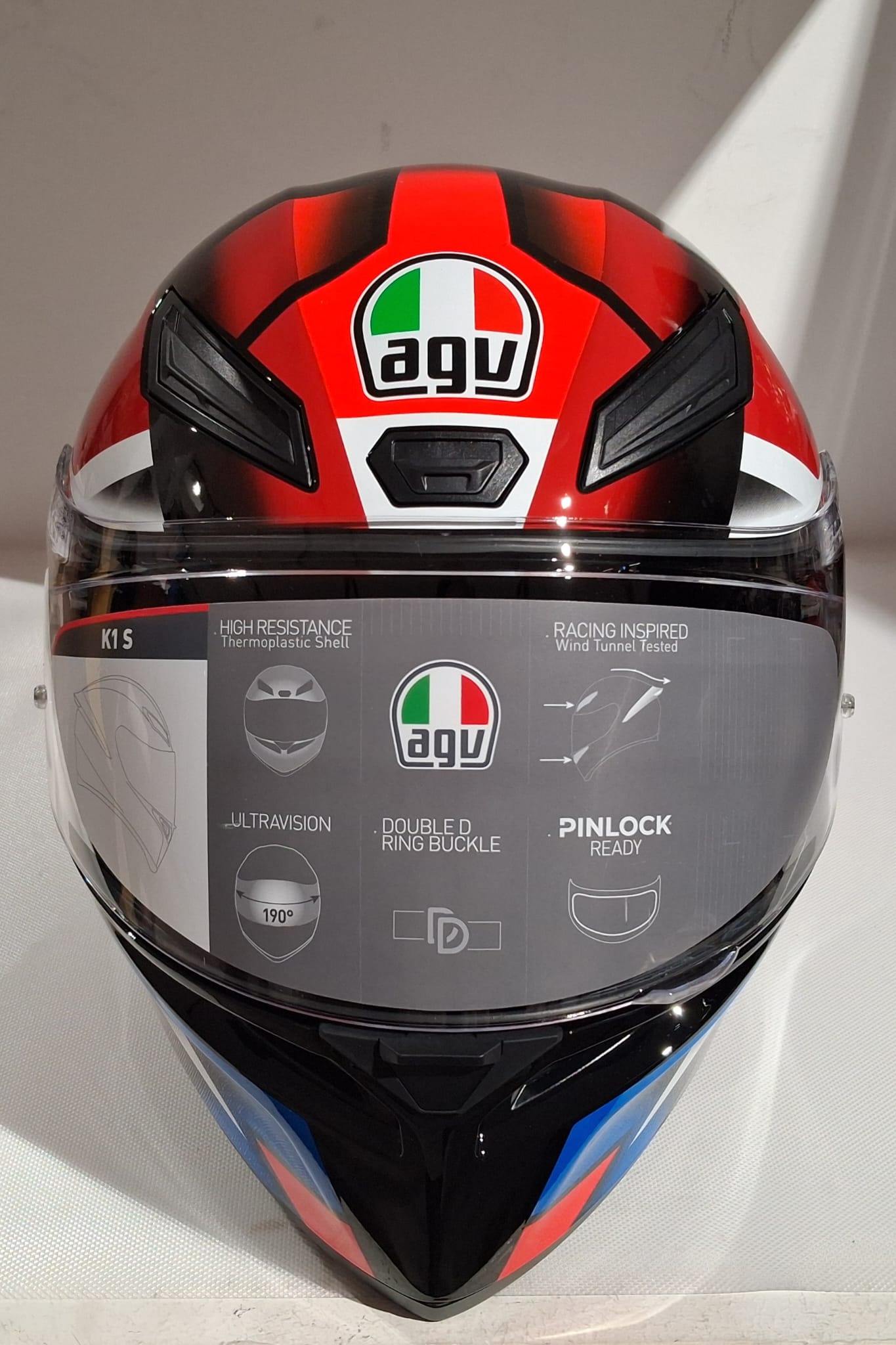 K1 S è il casco stradale nato dall’esperienza AGV in MotoGP, adatto ad un utilizzo trasversale su ogni percorso. La forma aerodinamica della sua calotta in materiale termoplastico ad alta resistenza, le prese d’aria frontali sviluppate attraverso l’esperienza racing e il nuovo Aero Spoiler progettato in galleria del vento massimizzano le prestazioni e donano stabilità anche ad alte velocità durante la guida sportiva. La visibilità panoramica antigraffio Ultravision offre una più ampia visione laterale e verticale, per un controllo totale dell’ambiente circostante. Un comfort senza compromessi, grazie ai morbidi interni Dry-Comfort rimovibili e lavabili. Grazie al protocollo costruttivo AGV Extreme Safety, K1 S supera con ampio margine i requisiti della rigorosa normativa ECE22.06.AGV K1 S è predisposto per l’installazione di sistemi di comunicazione.