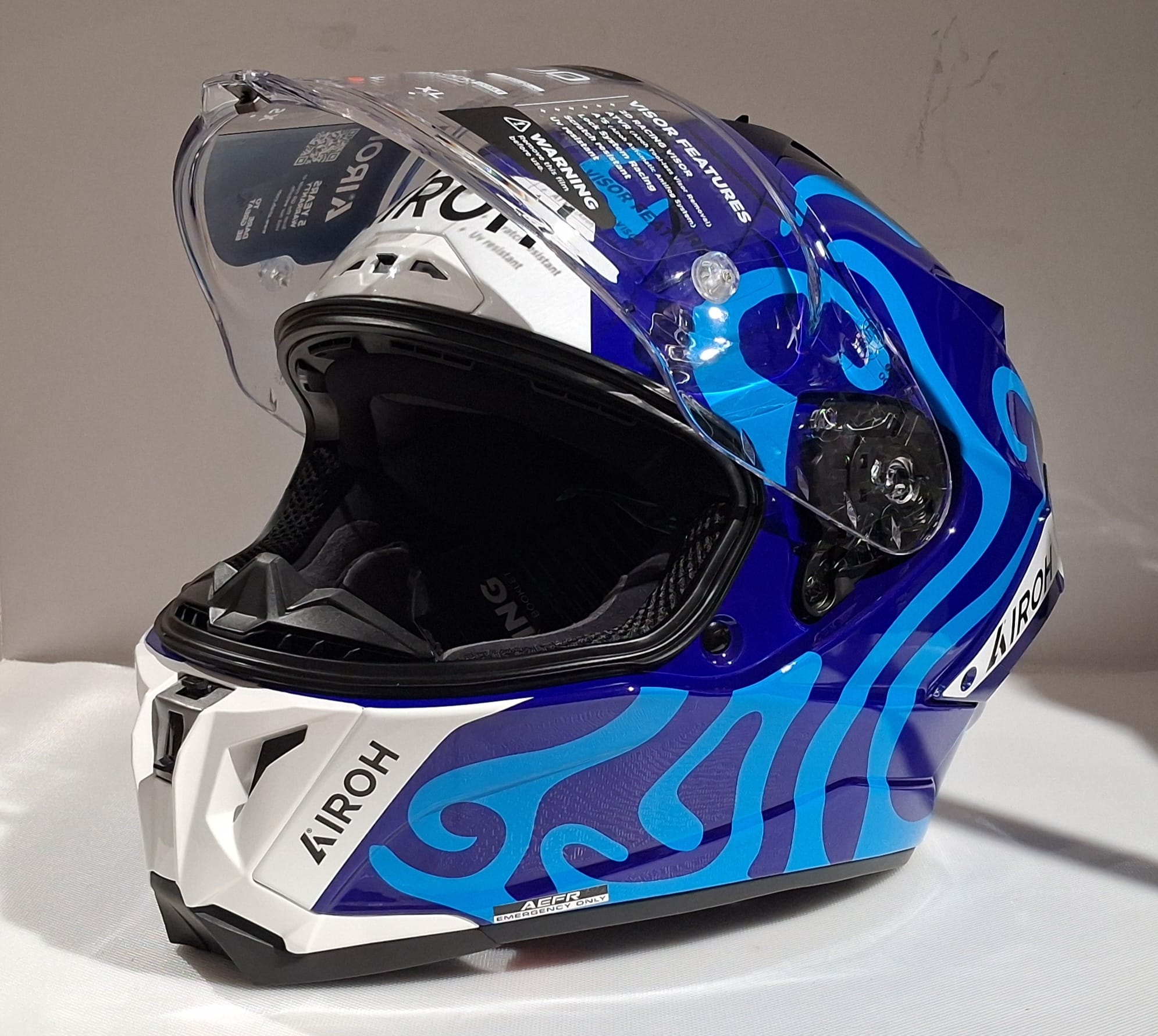 Visore: 2d racing visor | ATVR (Airoh Tool-less Visor Removal) | Lock System Racing | Scratch resistant | Uv resistant | A3S (Airoh Automatic Antifog System) | Tear Off Ready | Extra Wide Vision