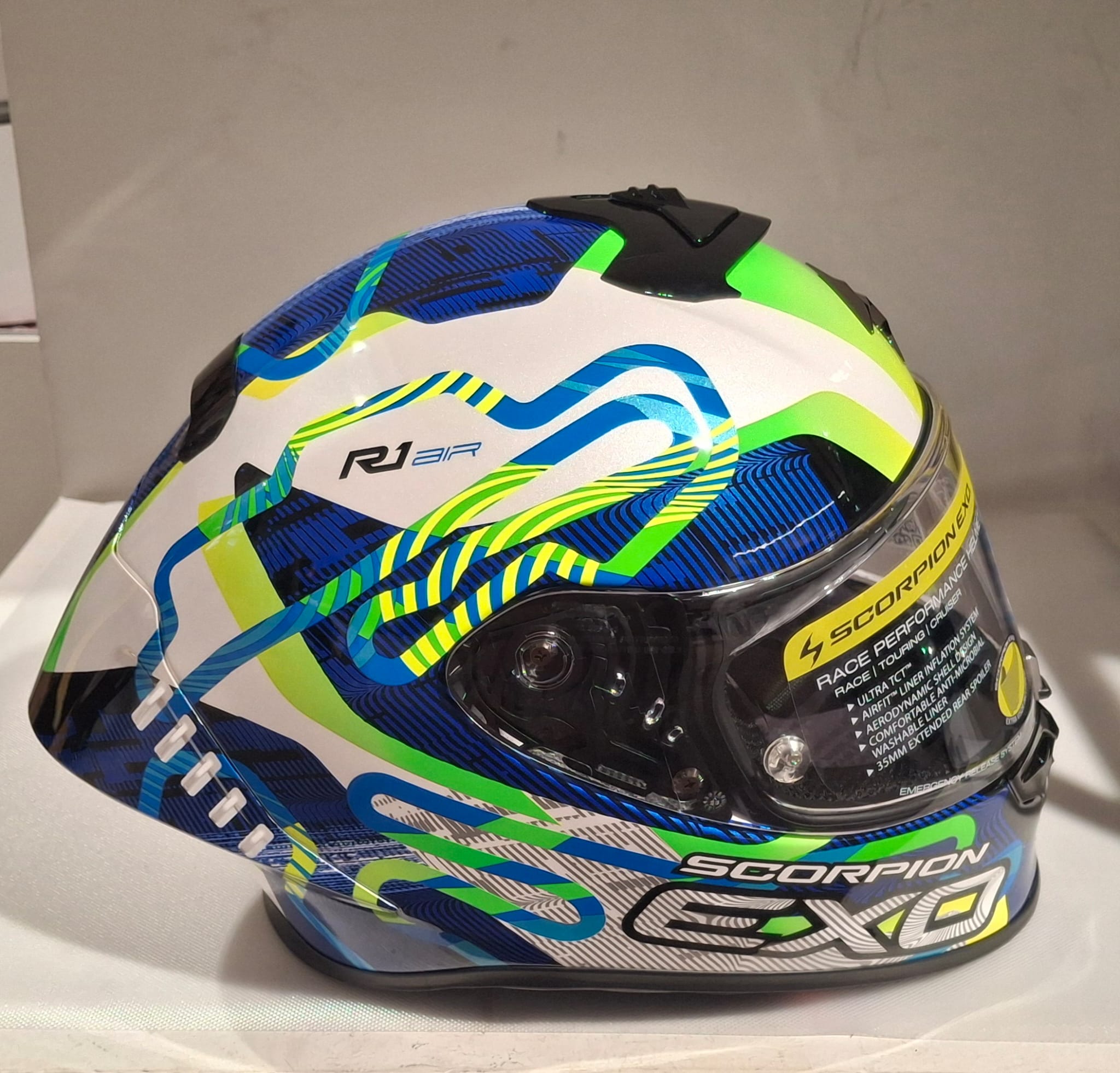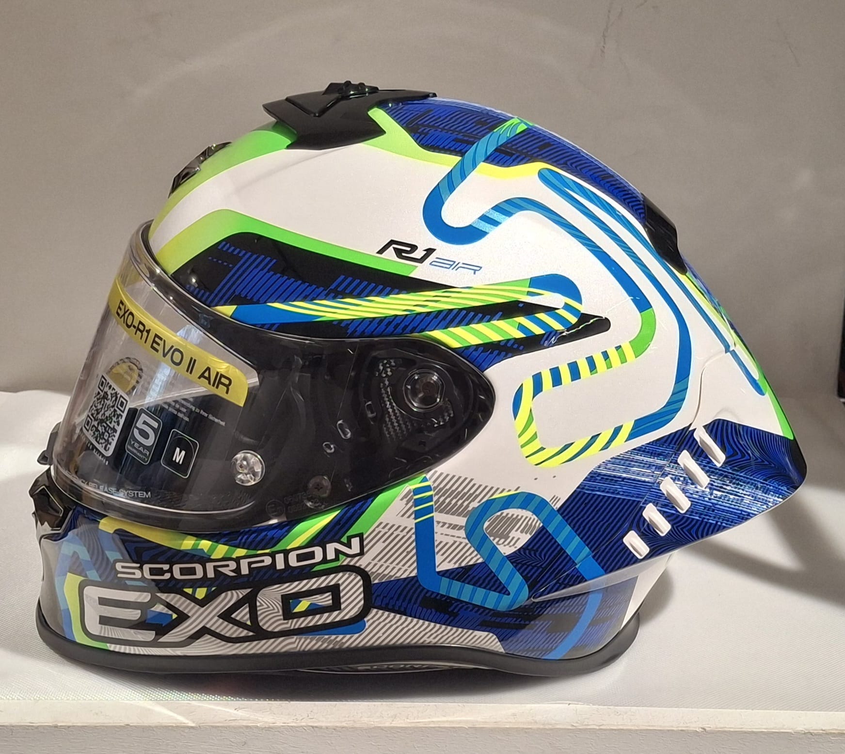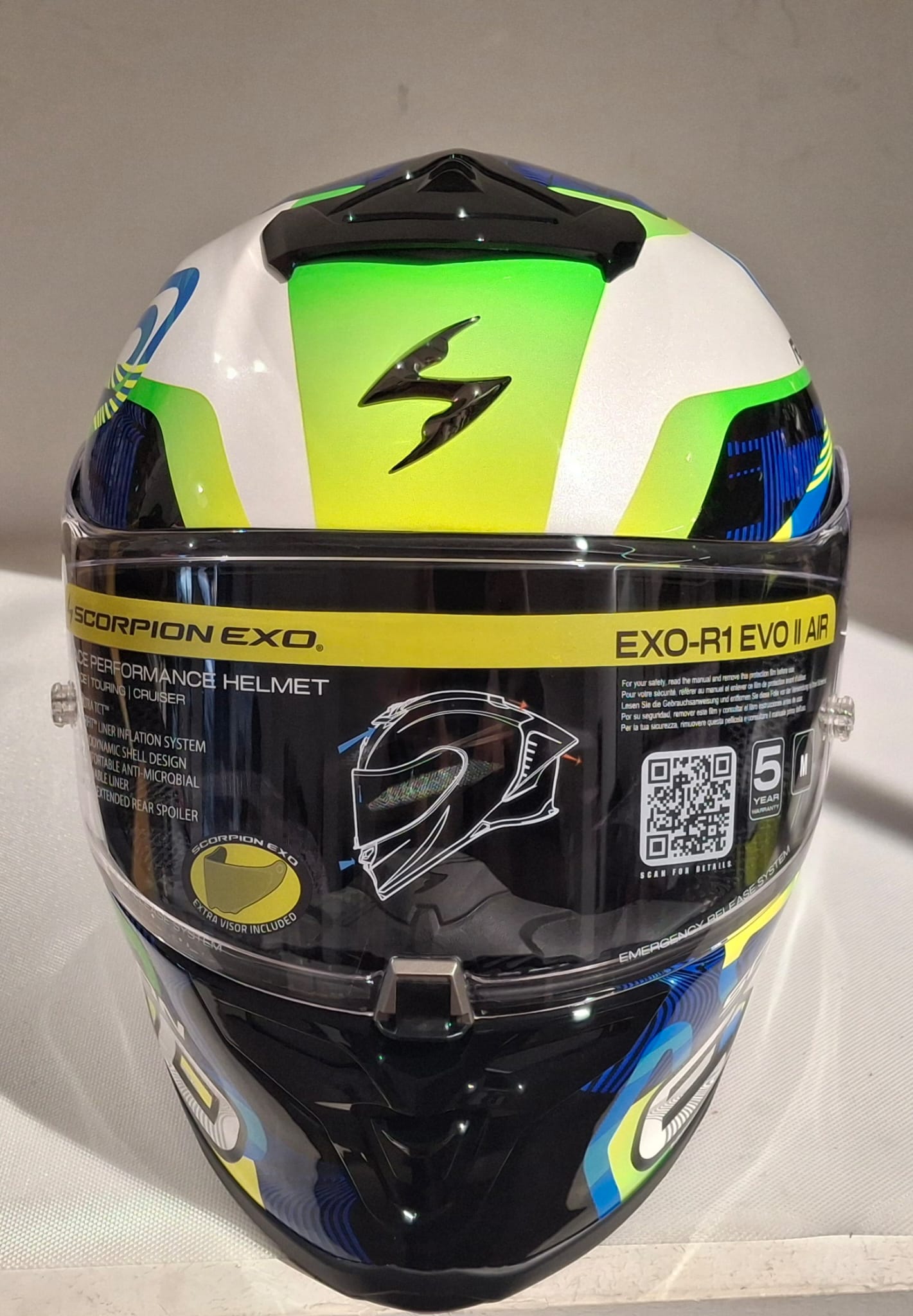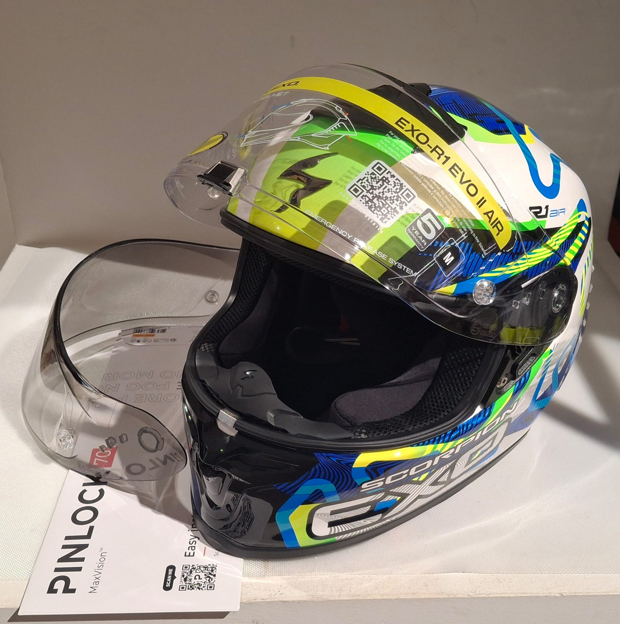 La seconda generazione del casco sportivo integrale ad alte prestazioni di Scorpion con omologazione ECE 22.06 e soggetto alle condizioni più dure nelle competizioni MotoGP e WSBK. Estremamente leggero e resistente realizzato con struttura Ultra TCT (Thermodynamical Composite Technology), che garantisce una protezione eccezionale contro gli impatti in quanto offre un maggiore assorbimento dell’energia generata in caso di impatto. Dispone di imbottitura interna Kwikwick3 ad alto comfort, sistema Airfit e meccanismo dello schermo Ellip-Tec II. Si distingue per la sua estetica sportiva. L’Exo-R1 Evo II Air viene consegnato con una seconda cupolino fumè scuro con predisposizione Pinlock Maxvision.