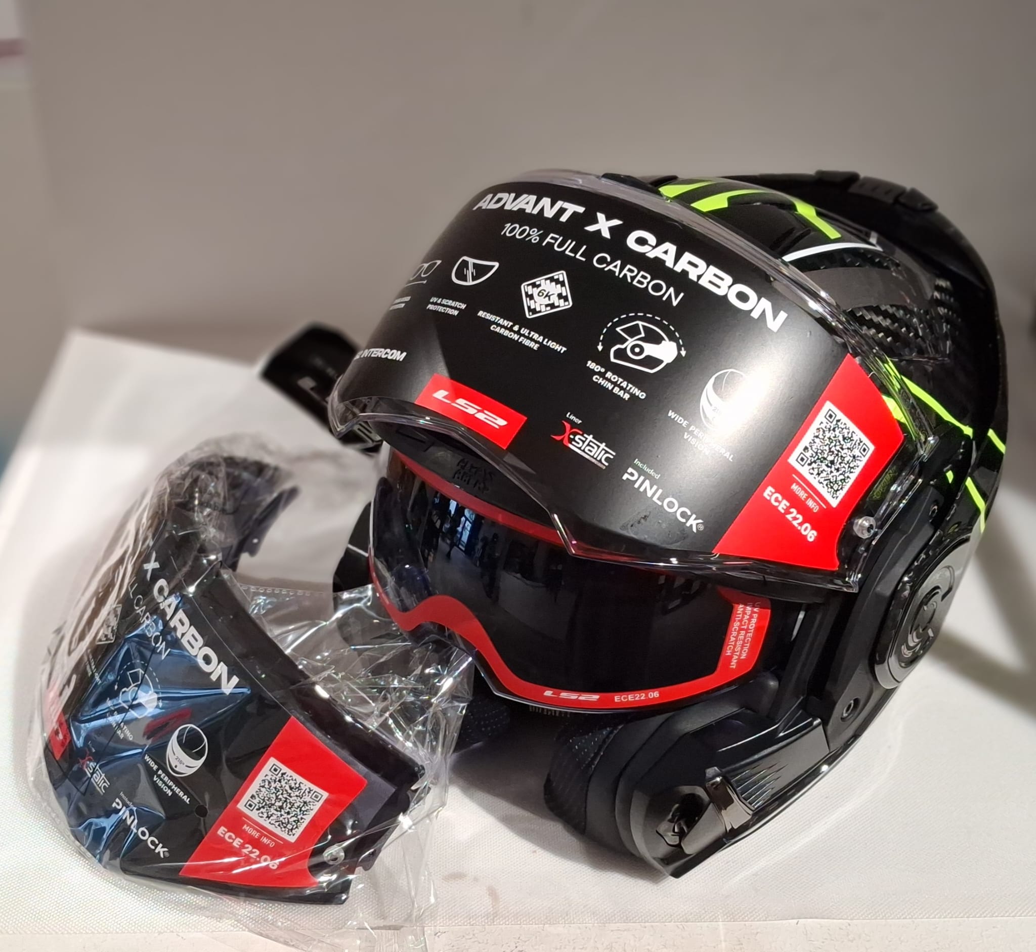 Il casco modulare più avanzato del mercato. Realizzato al 100% in fibra di carbonio, compresa la mentoniera ribaltabile a 180º che offre la massima leggerezza e sicurezza. Perfetto per qualsiasi tipo di guida e per tutte le condizioni atmosferiche. Ampia visiera antigraffio predisposta per il sistema antiappannamento Pinlock Max Vision e visierino parasole a scomparsa.