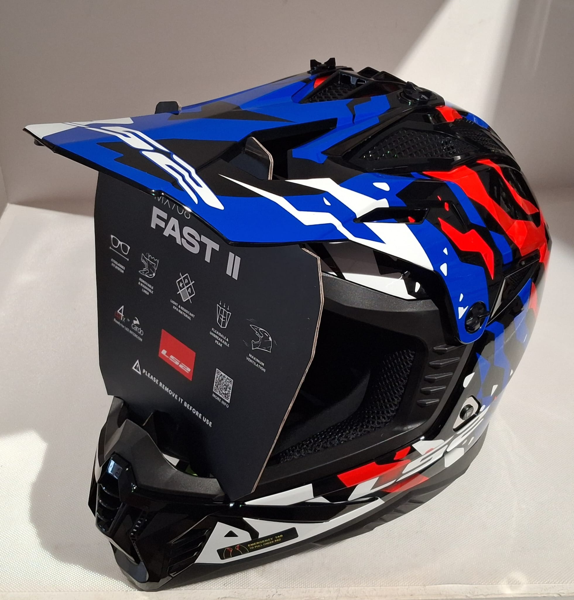 Goditi la guida offroad con questo casco leggero e sicuro realizzato in materiale KPA. È dotato di frontino regolabile e rimovibile. Combinalo con la gamma di maschere LS2! Caratteristiche: * Calotta KPA (Kinetic Polymer Alloy) * Chiusura a doppio anello a D * Sistema di rilascio di emergenza dei guanciali * Cinturino rinforzato * Piastra di sicurezza in metallo * EPS multicanale * Prese d’aria superiori * Ventilazione sulla mentoniera * Vari estrattori * Fodera rimovibile e lavabile * Schiuma tagliata al laser * Frontino regolabile * Peso: 1050 (±50 gr) * Omologato ECE 22-06